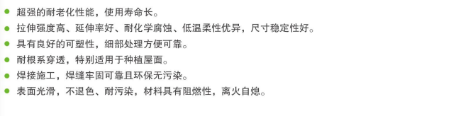 本產(chǎn)品是采用PVC樹脂加入增塑劑、抗紫外線劑、抗老化劑、穩(wěn)定劑等進口助劑制成的高分子防水卷材,產(chǎn)品壽命遠高于一般防水卷材,以其優(yōu)異的性能廣泛應用于各種防水工程領域。