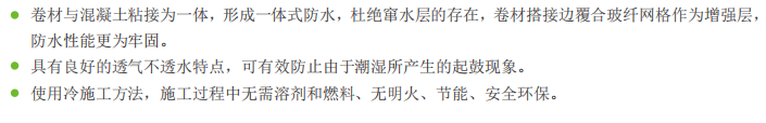 GTS防水卷材由高耐候防水涂料,增強(qiáng)胎體及雙層自粘橡膠瀝青膠料,多層材料復(fù)合而成,后背隔離膜。其中, 涂料防水層除可增強(qiáng)卷材的耐老化性能外,還具有防水的功能。尤其是在外露要求、耐久年限和防水等級 較高的建筑防水施工工程中,該系統(tǒng)能有效的解決現(xiàn)有防水卷材的環(huán)保以及耐久問題。產(chǎn)品通過引進(jìn)技術(shù) 來優(yōu)化產(chǎn)品結(jié)構(gòu),高耐候涂層作為保護(hù)層,卷材搭接邊覆合自粘網(wǎng)格帶作為增強(qiáng)層。高耐候涂層使卷材耐 候性更優(yōu)異,直接外暴露,無需保護(hù)層,卷材搭接邊網(wǎng)格增強(qiáng)層,解決了防水卷材施工后搭接處易翹邊的問題。 GTS 復(fù)合防水卷材通過住房和城鄉(xiāng)建設(shè)部科技成果報告,此產(chǎn)品已入選北京市 2016 年節(jié)能低碳技術(shù)產(chǎn)品 及示范案例推薦目錄。